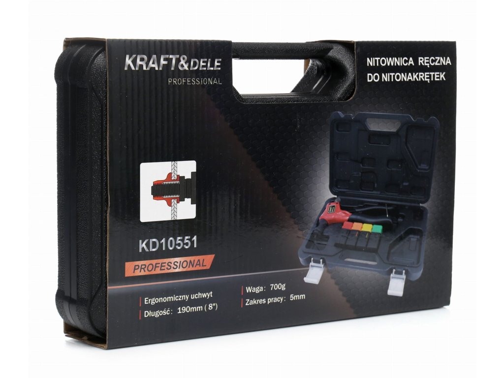 Profesionální ruční nýtovačka model KD10551 značky KRAFT&DELE. Vyrobená z vysoce kvalitních materiálů, včetně oceli a hliníku.