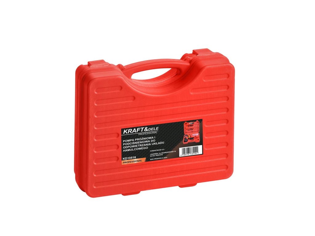 Ruční vakuová pumpa značky Kraft&Dele, model KD10516. Sada obsahuje všechny potřebné příslušenství pro obsluhu zařízení.