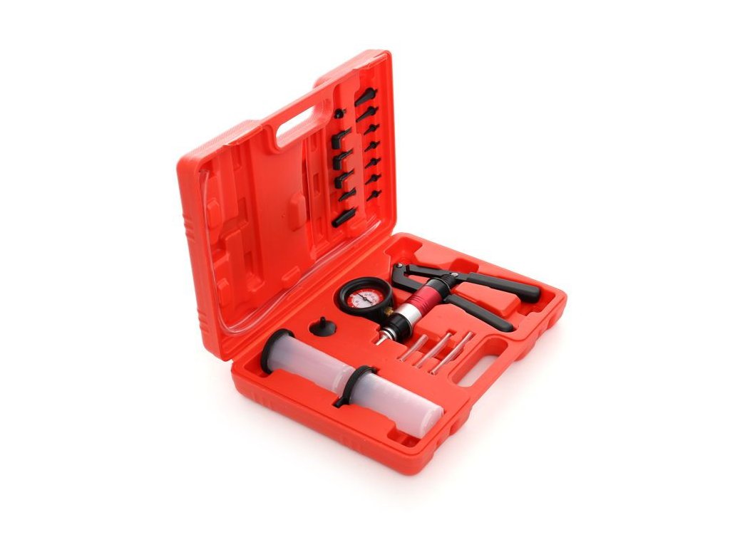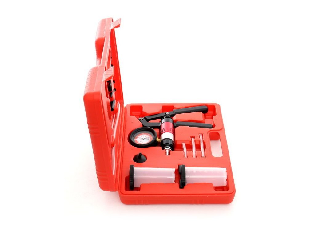 Sada umožňuje kontrolu hydraulických částí automobilů. Lze ji použít k odvzdušnění hydraulických systémů nebo kapalných sifonů. Vybavena integrovaným vakuovým manometrem.