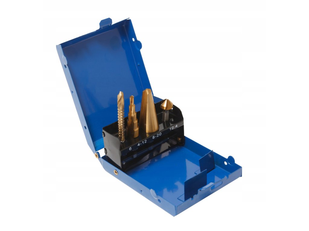 Sada 4 ks: vrtáky, rozvrták a kuželový záhlubník