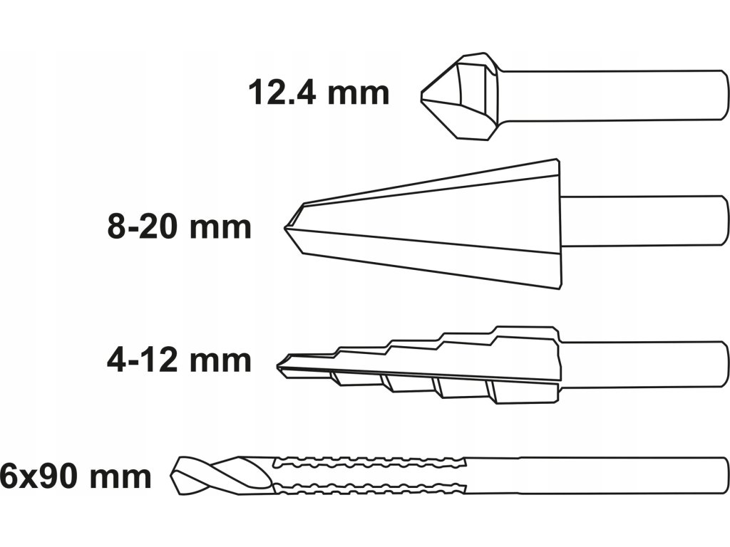 - Krokový vrták: 4–12 mm
