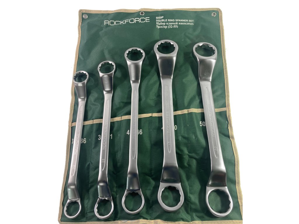 Sada 5 ks ohnutých očkových klíčů, 32-55 mm, CrV