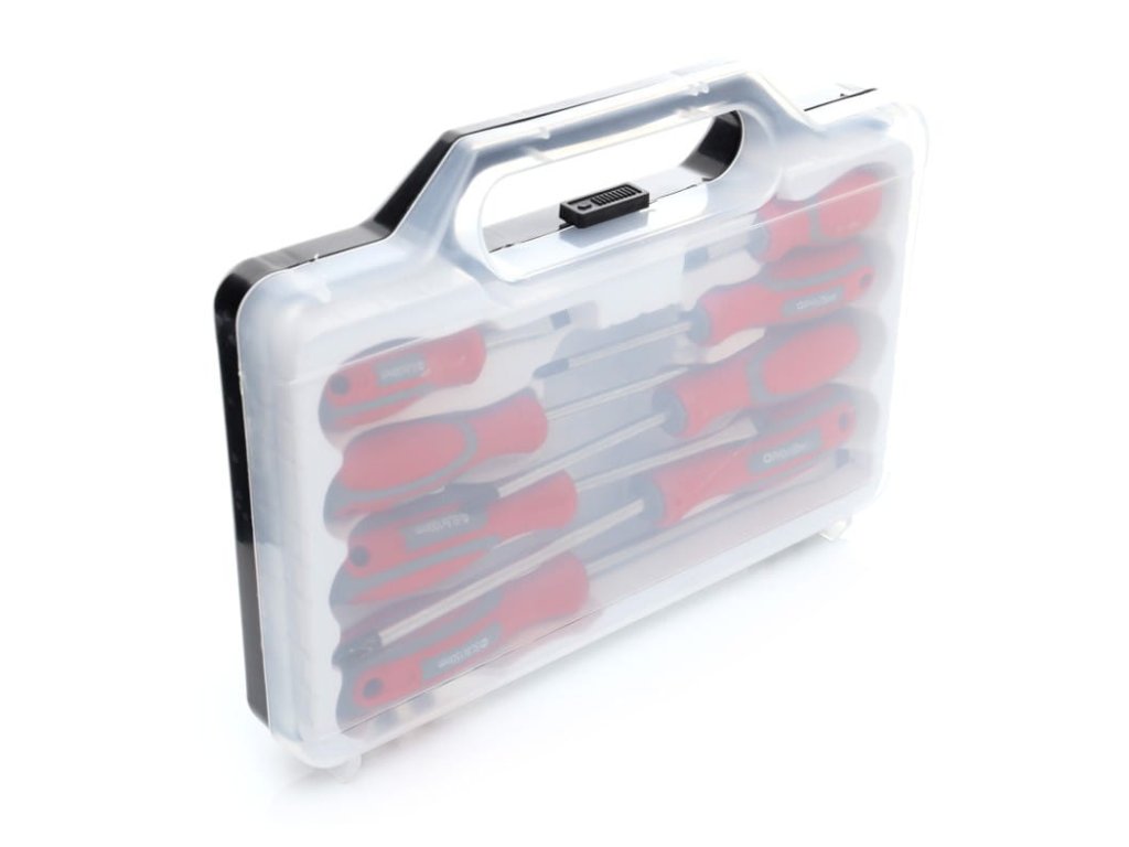 | Specifikace: • Vysoce kvalitní materiály: ocel CrV, plast a guma. • 8 různých délek šroubováků. • Saténově upravené, tvrzené, pískované a magnetizované hroty. • Pohodlná rukojeť s gumovým povrchem. • Praktický kufřík v balení. • Vhodné pro ploché i křížové šrouby. |