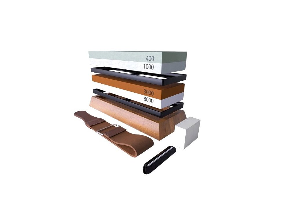 Nejmenší zrnitost slouží k hrubému broušení a opravě ostří, zatímco kámen se zrnitostí 1000 se používá k vyhlazení řezné hrany a je ideální pro každodenní použití. Po hrubém broušení lze přejít k dokončení a vyleštění ostří podle vlastního uvážení, s pomocí kamene se zrnitostí 3000/4000.