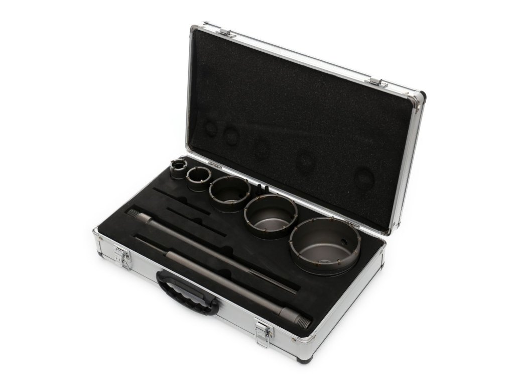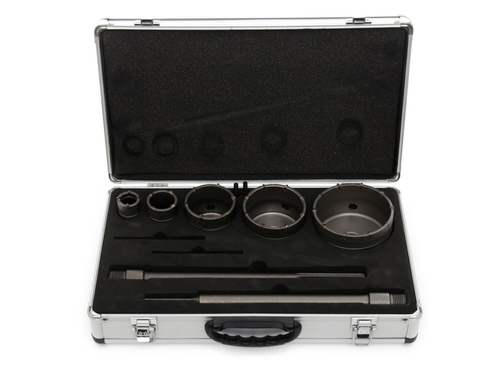 Vrtáky jsou vybaveny ozubeným věncem z karbidu HM a vedení vrtáku obsahuje vložku z karbidu. Tento set je určen především k vyřezávání otvorů pro instalační krabice, zásuvky, svazky kabelů, trubky a mnoho dalšího. Bez problémů zvládne veškeré typy stavebních materiálů, jako jsou beton, cihly, omítka, tvárnice, sádrokartonové desky, sádrocementové desky a další.