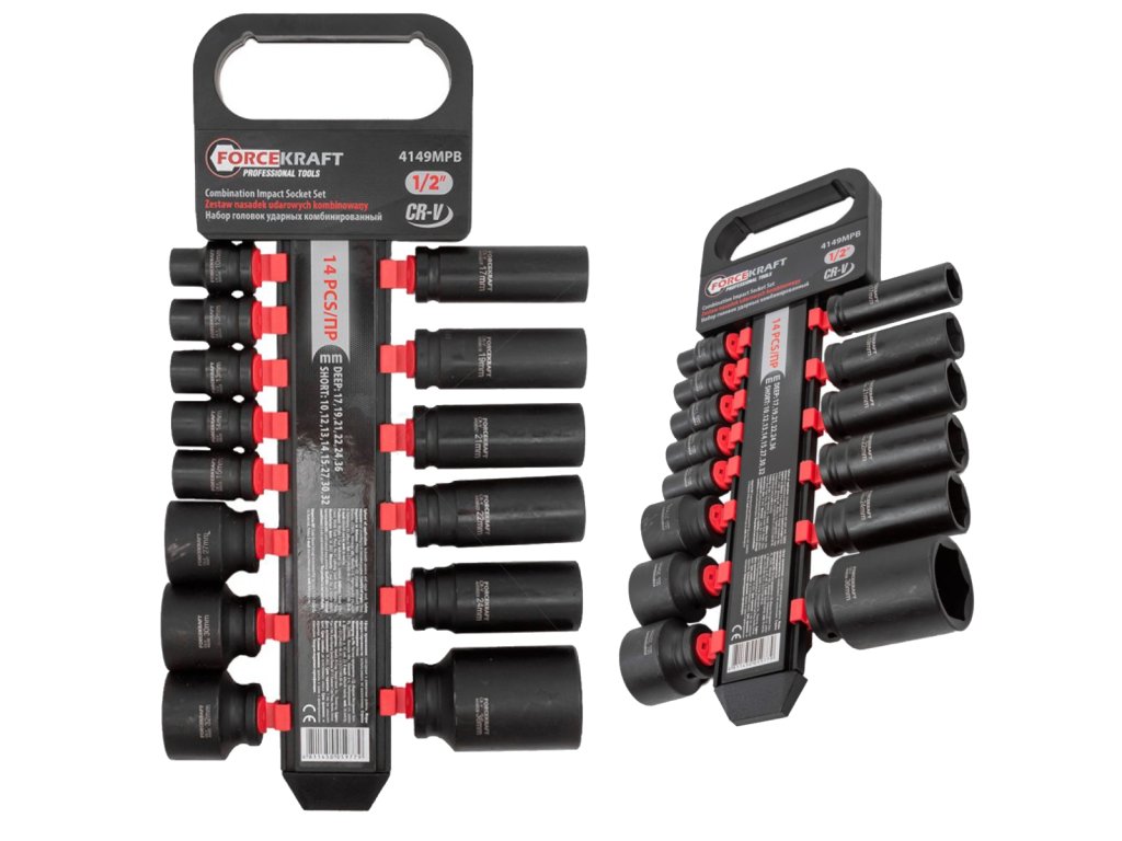 Sada dlouhých rázových hlavic 1/2" 10–36 mm – Forcekraft