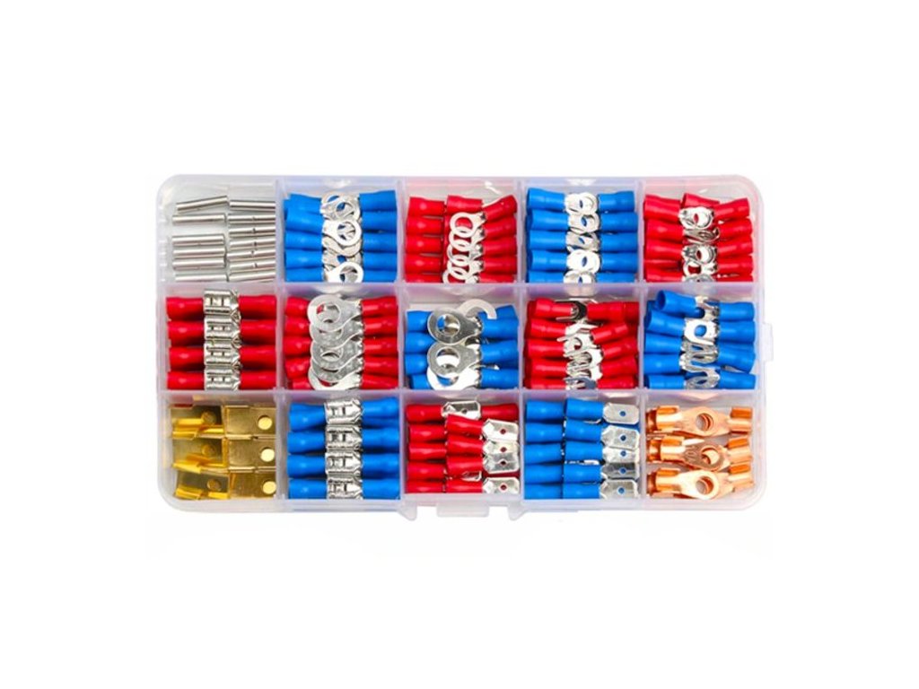 Izolované konektory lisované značky Kraft&Dele, model KD10488, dodávané v praktickém pevný balení, které usnadňuje třídění jednotlivých typů konektorů.