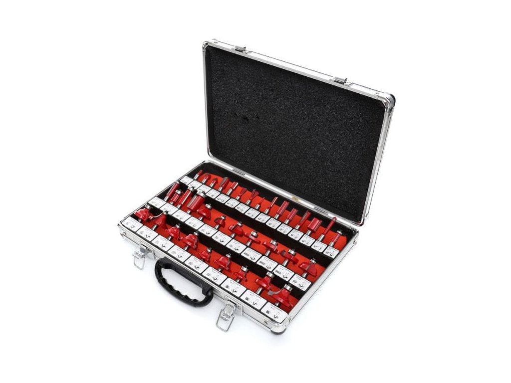21 fréz má ložisko, které snižuje tření a velmi tvrdé břity vyrobené z wolframového karbidu. Kompletní sada je uložena v profesionálním kufříku, kde má každý fréz své označené místo.