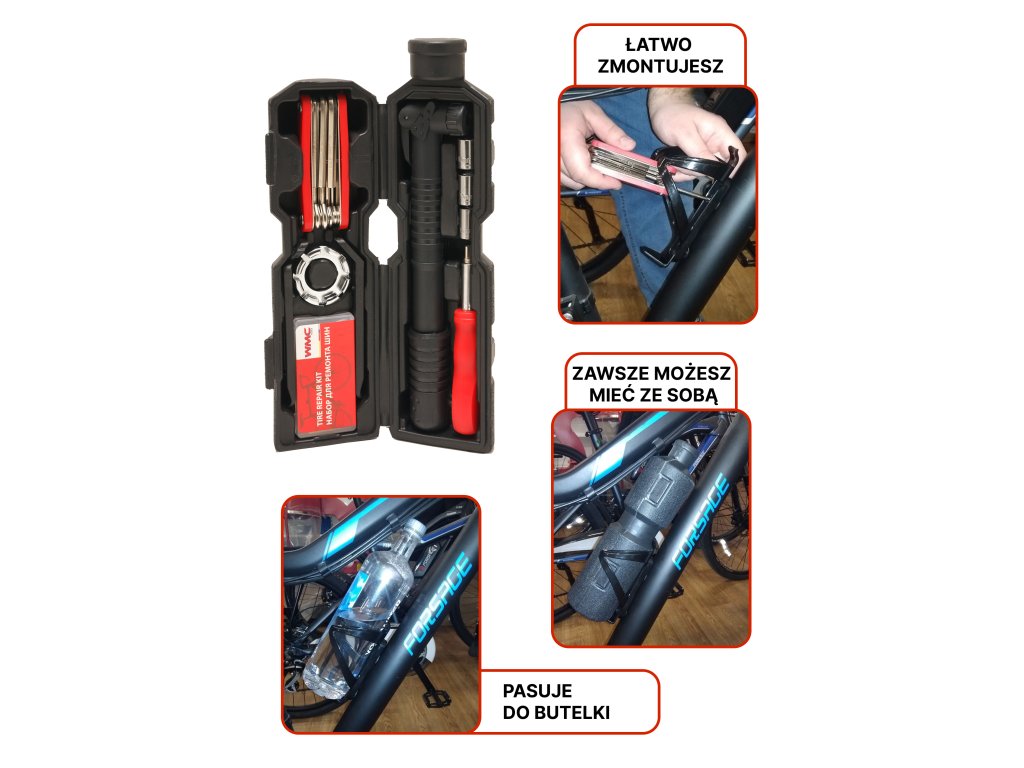 Sada na opravu jízdního kola, 27 ks, včetně bidonu
