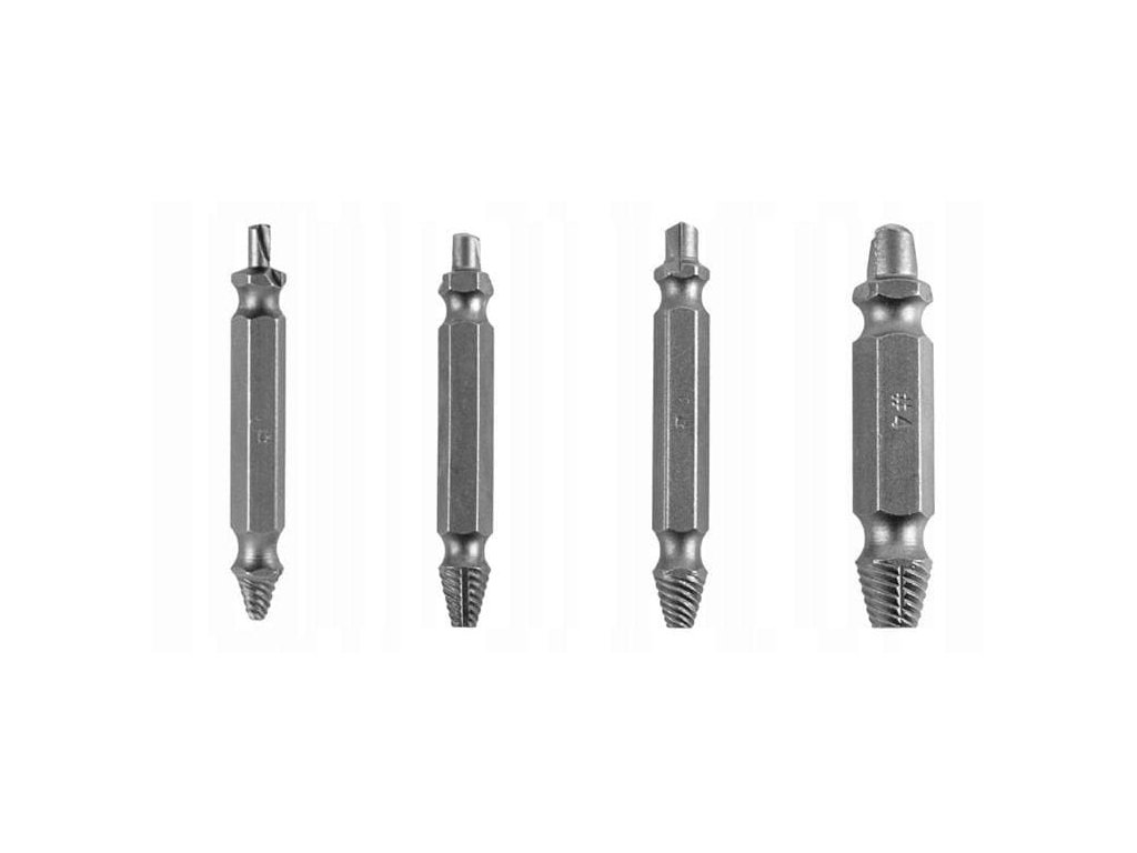 SNADNÉ POUŽITÍ – stačí vyvrtat otvor v ulomeném šroubu a zašroubovat vykroutač, šroub se sám vytočí. Pomohou tehdy, když běžný šroubovák nebo bit nezvládne poškozený šroub.