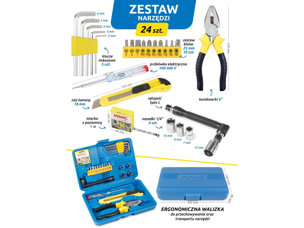 Sada nářadí 24 ks: kombinační kleště, bity a imbusové klíče