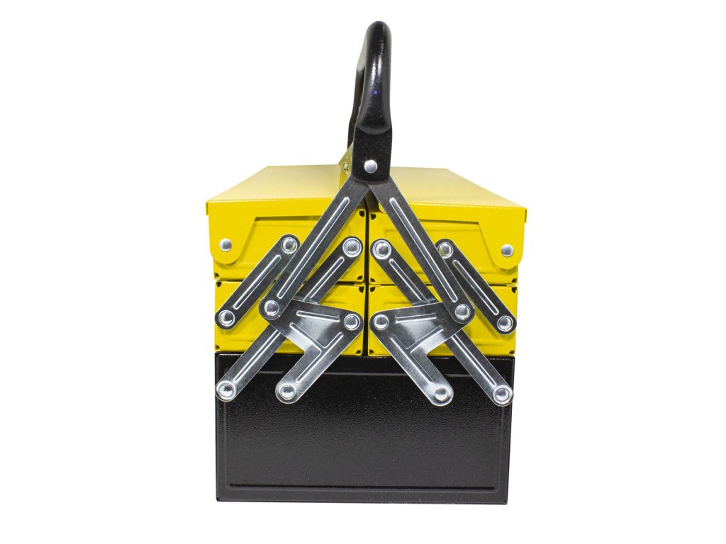 Kufr lze uzamknout visacím zámkem, což zajišťuje bezpečný a pohodlný převoz nářadí.