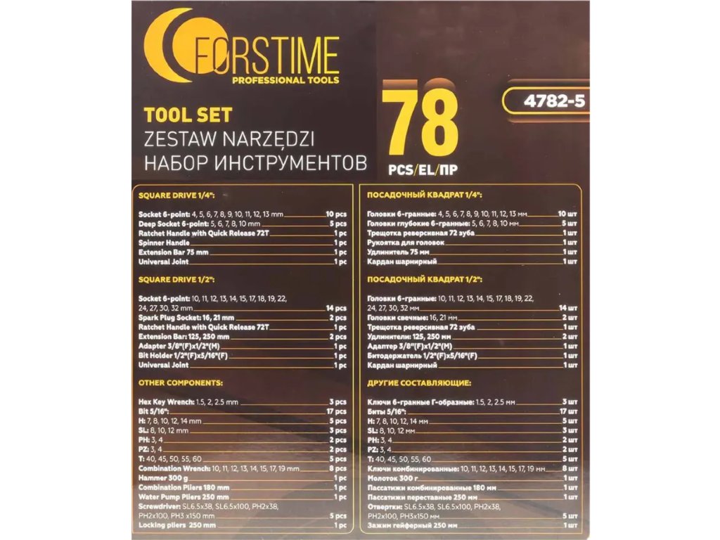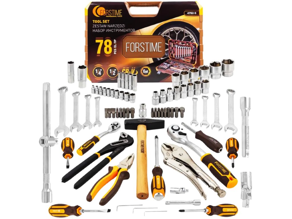 Sada nářadí FORSTIME, velká, 78 dílů, 1/4" a 1/2", 6hranné hlavice 4-32 mm