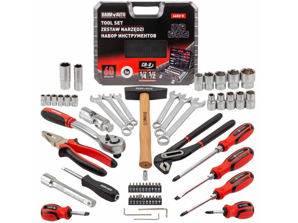 Sada nářadí s nástrčnými hlavicemi, klíči a ráčnou, 36 dílů