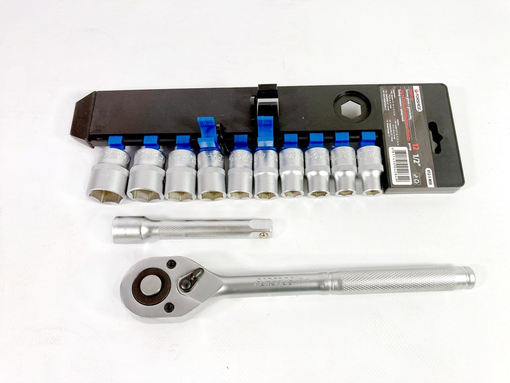Sada nástrčných hlavic 1/2" s ráčnou, 12 ks, Cr-V