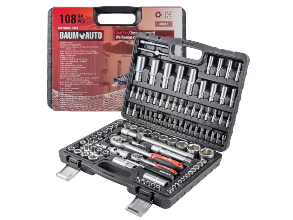 Sada nástrčných klíčů 108 dílů zabalená v originálním kufříku. Kufřík je navržen a vyroben z vysoce kvalitního plastu. V sadě najdete vše, co potřebuje domácí kutil nebo automobilový nadšenec.