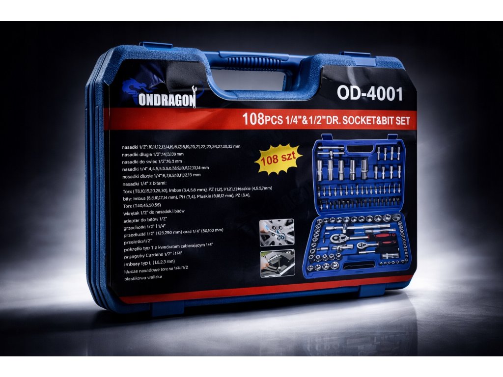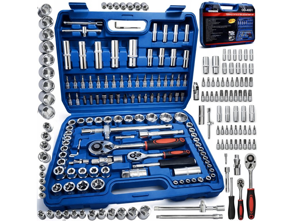 Kompletní a univerzální sada nástrčných klíčů se 108 díly je navržena pro široké spektrum použití od domácího majsterkování až po profesionální dílenské práce. Díky kvalitní chrom-vanadiové oceli nabízí vysokou pevnost, dlouhou životnost a odolnost proti opotřebení. Bohatá výbava včetně nástavců TORX, bitů, prodloužení a dvou ráčen zajišťuje perfektní přizpůsobení pro každou práci. Vše je uloženo v praktickém kufru, který udržuje nářadí přehledně uspořádané a snadno přenosné.
