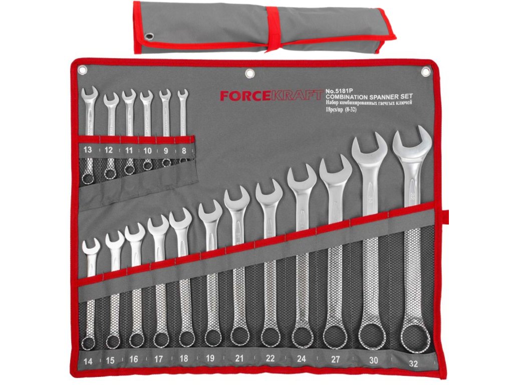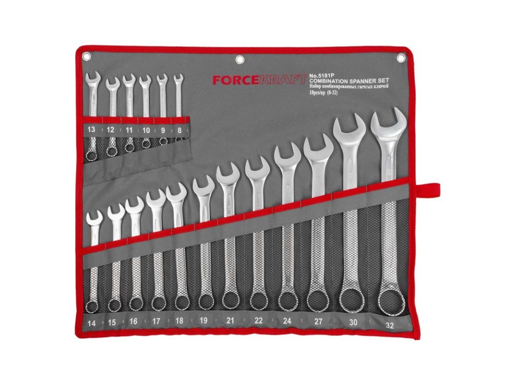Sada očkoplochých klíčů 8–32 mm, 18 ks, v plátěném pouzdru