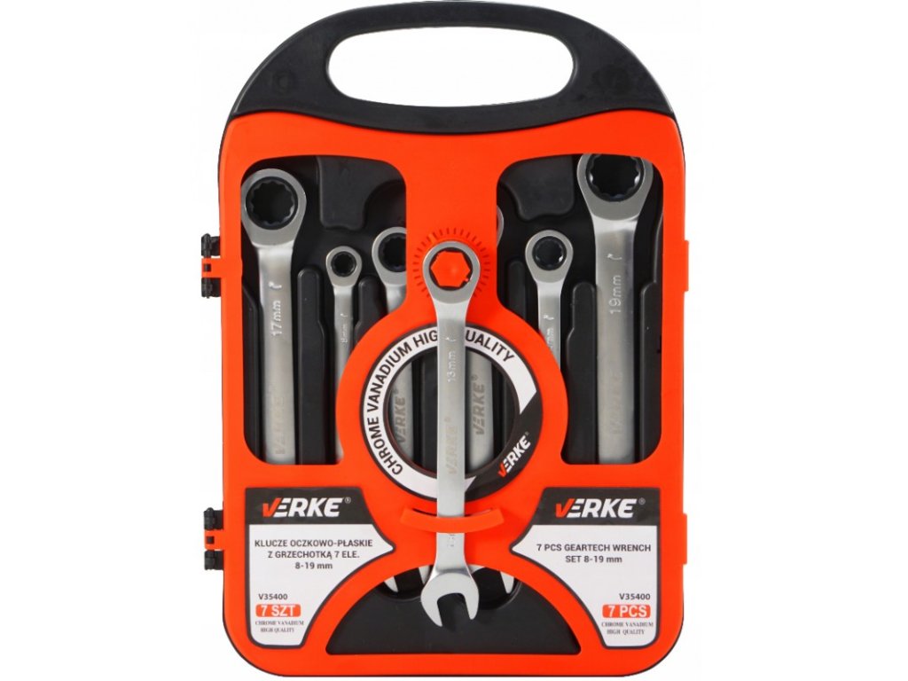 Sada očkoplochých klíčů s ráčnou 7 ks 8-19 mm závěs VERKE V35400