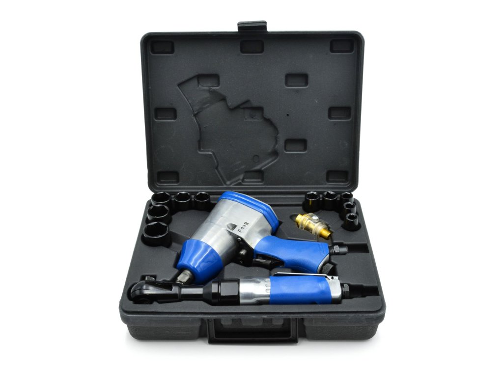Sada pneumatického nářadí 14ks G03179 je ideální volbou pro profesionály i domácí kutily. Tato sada zahrnuje: pneumatický utahovák 1/2", pneumatickou ráčnu 1/2", olejovač a sadu nástrčných klíčů.