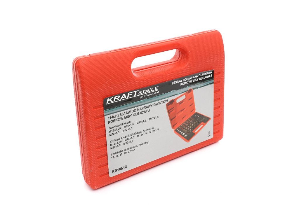 Sada závitníků a zátků s označením KD10512 pro jednoduchou opravu závitů vypouštěcích zátků olejové vany, převodovky a dalších. Vhodná pro většinu běžně používaných závitů u osobních automobilů a lehkých nákladních vozů. Sada je určena pro autoservisy, opravárenská pracoviště a servisní dílny.