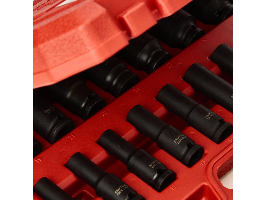 Profesionální sada ráčnových nástrčných hlavic značky Kraft&Dele s označením KD11749 je určena k použití s pneumatickými nástroji, které pracují v náročných podmínkách při proměnlivých zatíženích.