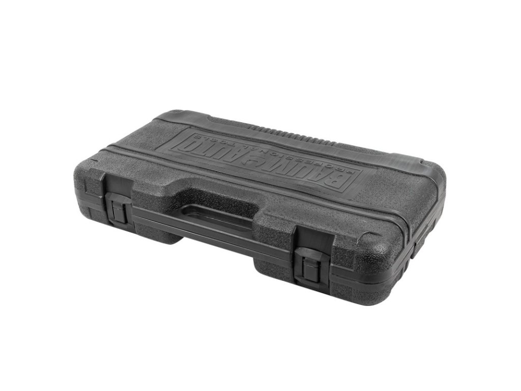 Sada obsahuje 26 dílů. Všechny nástrčné klíče a adaptéry jsou uloženy v praktickém plastovém kufru, který zajišťuje bezpečný převoz bez rizika samovolného otevření.