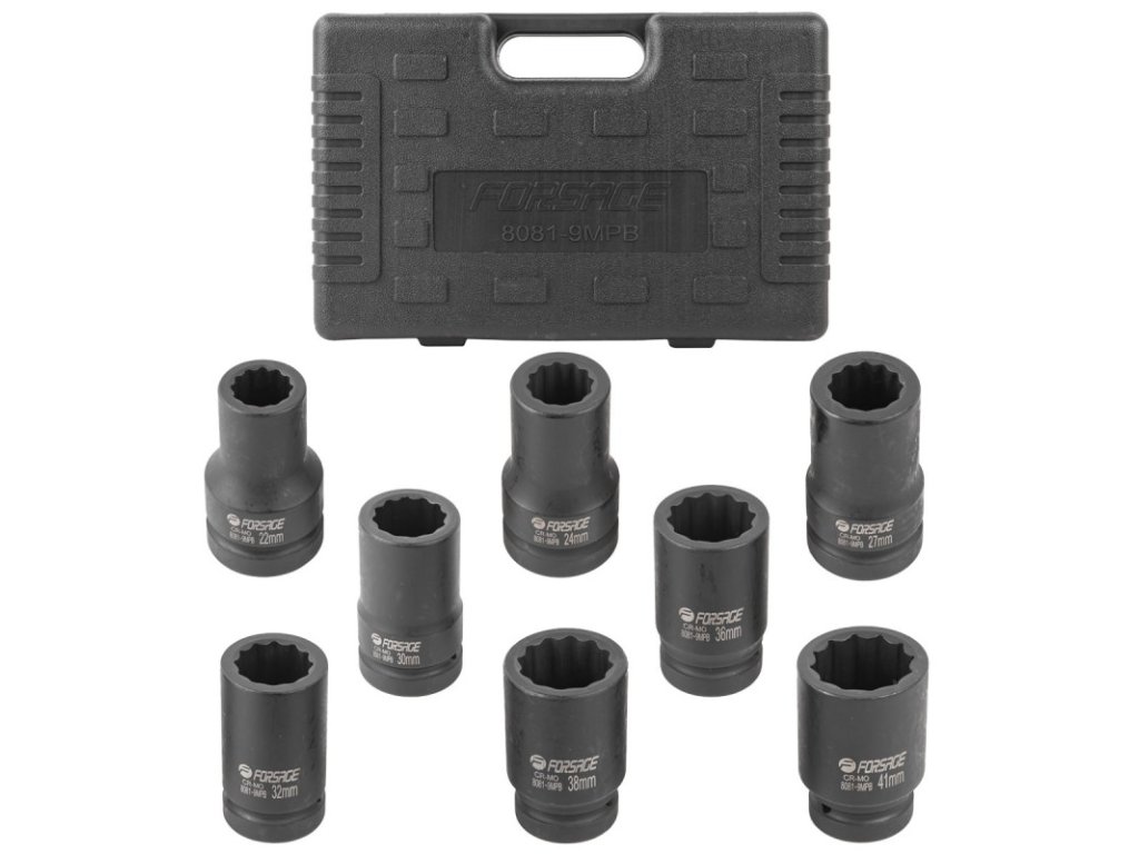 Sada rázových hlavic 1" 12hranné 22–41 mm