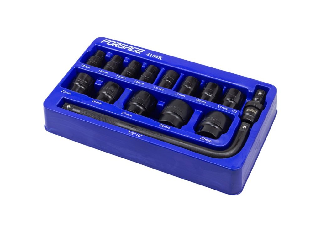 Sada rázových hlavic 1/2", 10–32 mm, 6hranné