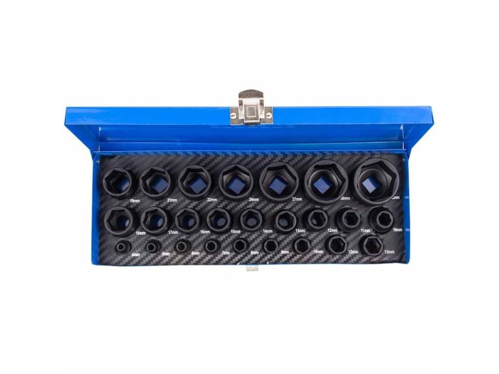Sada rázových hlavic 25 ks, 1/2" a 1/4", 6hranné, 4–32 mm, v kufříku