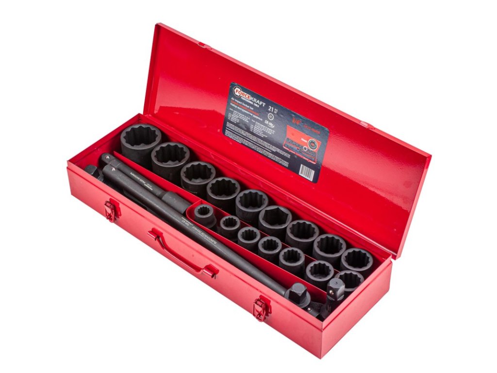 - Hlavice 12-hranné 3/4" - 16 ks: 17, 19, 21, 22, 24, 27, 30, 32, 34, 35, 36 (36 mm – 6-hran), 38, 41, 46, 50 mm;