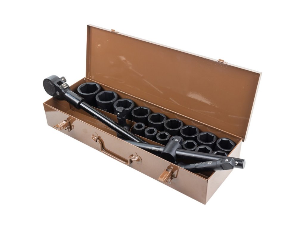 - Nástrčné hlavice 3/4" 16 ks, 6-hranné: 17, 19, 21, 22, 24, 27, 30, 32, 34, 35, 36, 36 (12hranná), 38, 41, 46, 50 mm