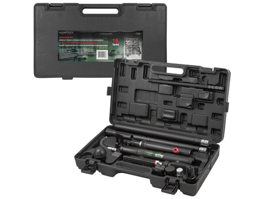 Sada obsahuje hydraulické čerpadlo, válce, prodlužovače a ohnuté nástavce. Lze ji také doplnit o hydraulický válec s opačným chodem a upínacími nástavci.