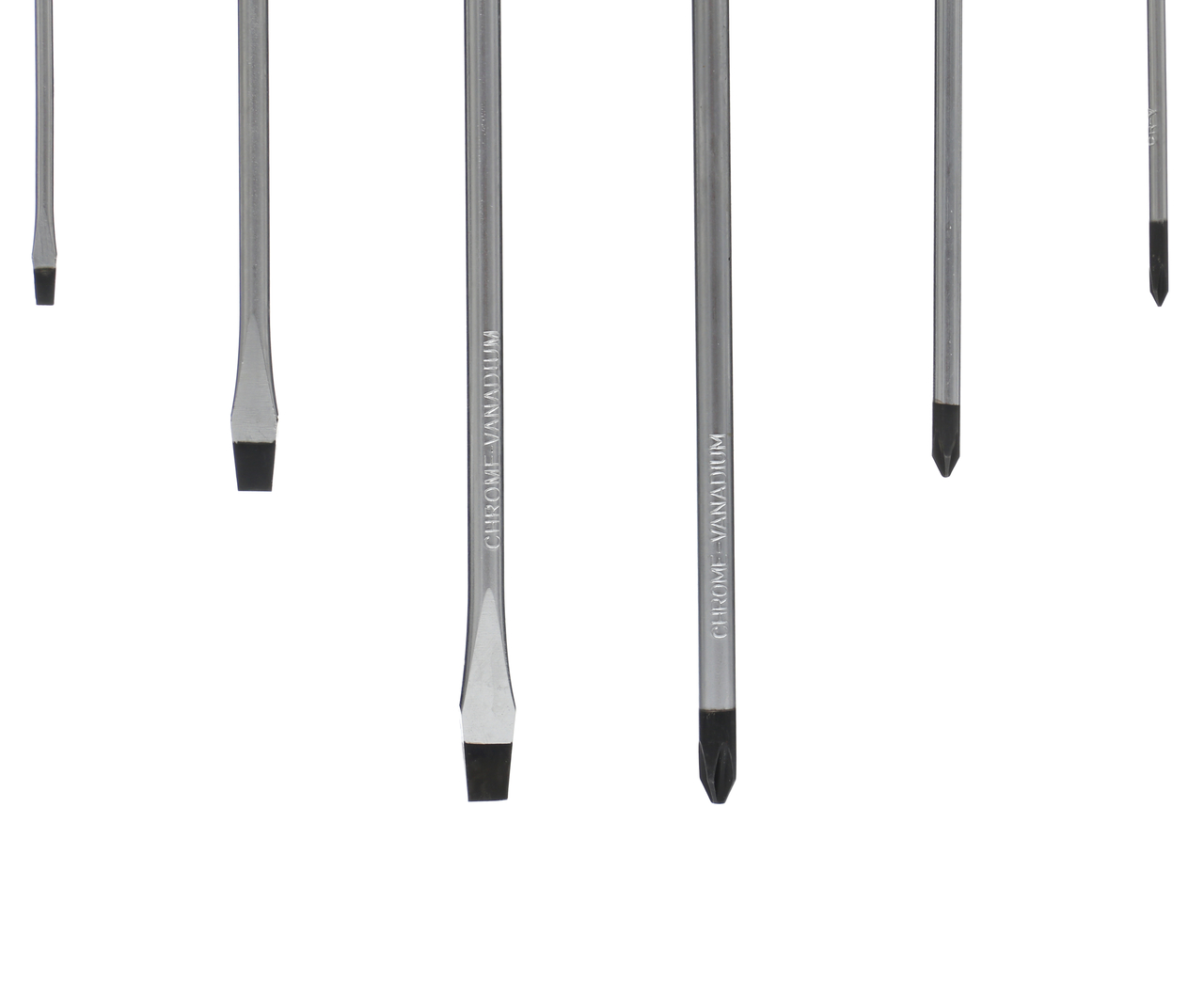 - 3 ploché šroubováky (3.0x75, 5.5x100, 6.5x150 mm)
