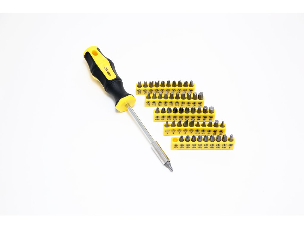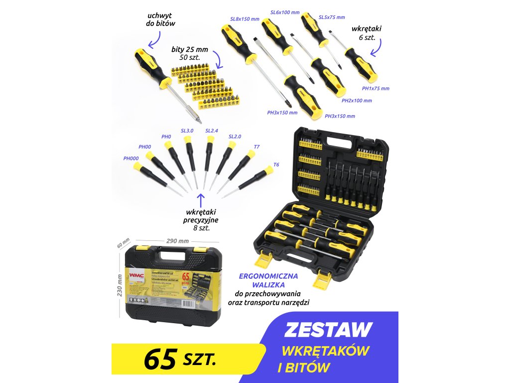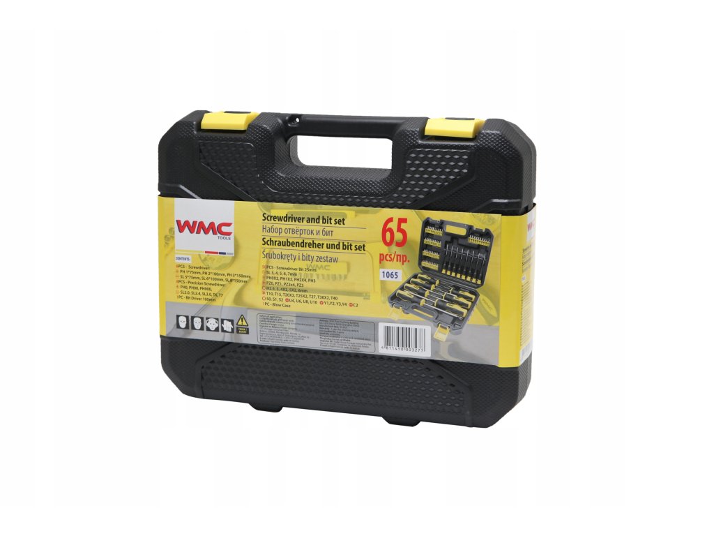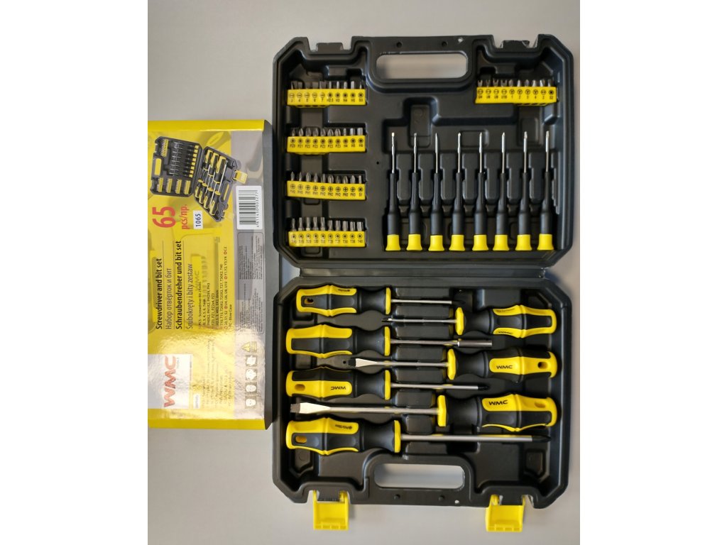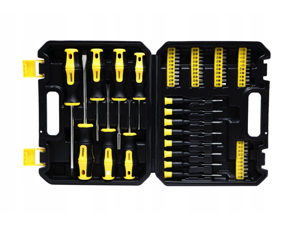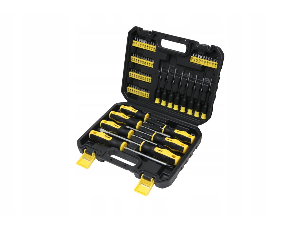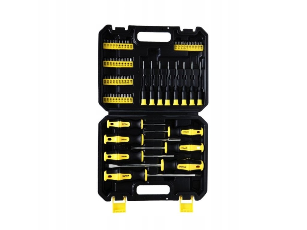 Sada šroubováků a bitů WMC obsahuje 65 vysoce kvalitních dílů. Pracovní hroty byly tepelně zpracovány, což zaručuje odpovídající tvrdost a odolnost proti ohybu. Šroubováky mají magnetické koncovky. Rukojeti zabraňují klouzání v ruce a jsou odolné vůči chemikáliím, olejům a mazivům. Spolu s 8 přesnými šroubováky a 50 bity různých tvarů a velikostí jsou všechny komponenty uložené v praktickém kufříku, který usnadňuje přepravu a skladování.