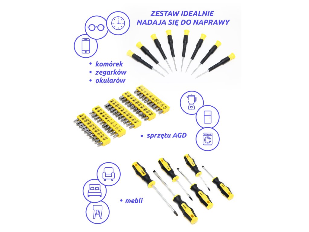 Sada šroubováků a bitů 65 ks s magnetem