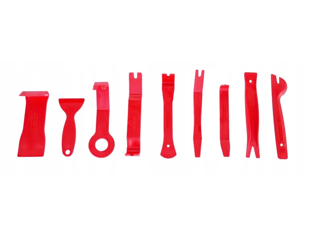 - Specializované tvary: Každý nástroj je speciálně tvarován pro snadnou demontáž různých částí automobilu, od čalounění po panely a rádia.