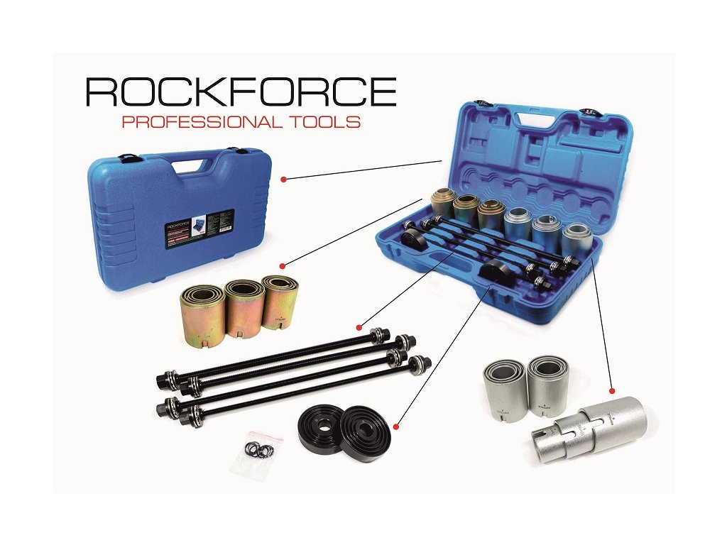 Sada slouží k lisování a vytlačování kovových i gumových pouzder v automobilu bez nutnosti demontáže ramen. Lze ji použít na hydraulickém lisu nebo s protahovacím tažným válcem.
