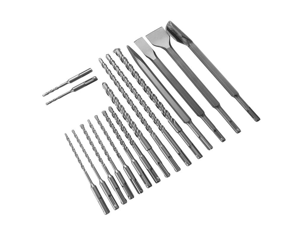 ✅ Kompletní sada 17 dílů – vše, co potřebujete pro vrtání a sekání