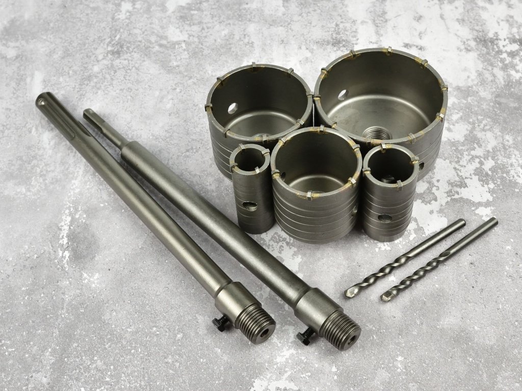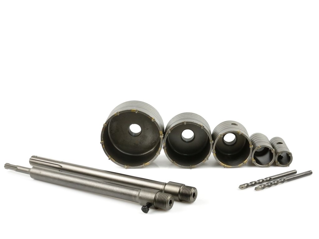 - Sada obsahuje pět děrovacích pil a dva adaptéry 300 mm SDS-Plus a SDS-Max