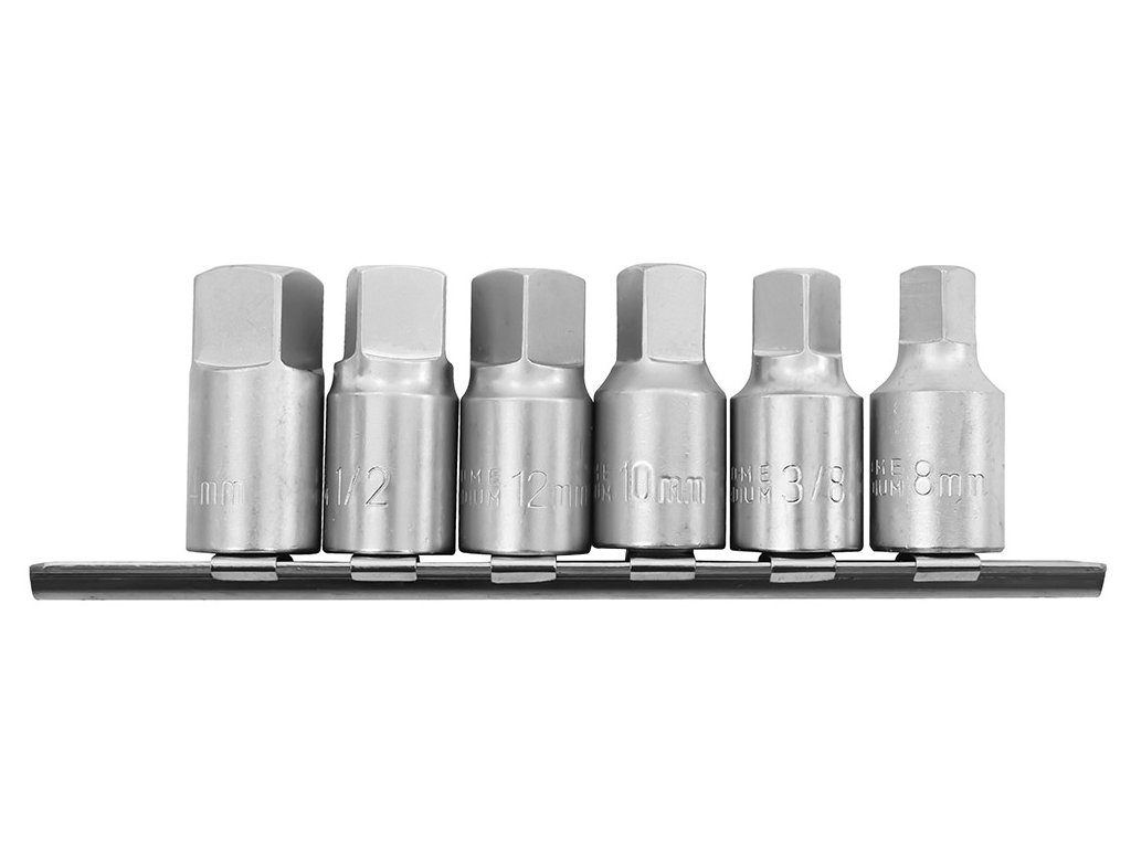 Sada 6 klíčů určených pro povolování a utahování vypouštěcích šroubů oleje v olejové vaně. Tyto prvky jsou vyrobeny z odolné CrV oceli.