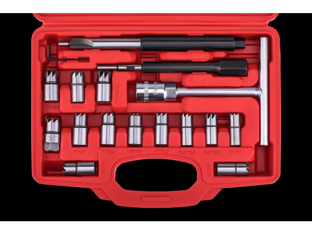 Sada fréz značky Kraft&Dele model KD12504 určená k čištění a dekarbonizaci sedel vstřikovačů. Odstraňuje karbon ze sedla vstřikovače, což umožňuje správné usazení vstřikovače v sedle. Odstranění karbonu a vyhlazení sedla vstřikovače zajišťuje těsné přilnutí podložky ke sedlu vstřikovače. Použití sady zabraňuje netěsnostem, které způsobují vypalování sedla a poškození bloku motoru. Tato sada je vhodná pro většinu osobních vozidel vyrobených po roce 2000.