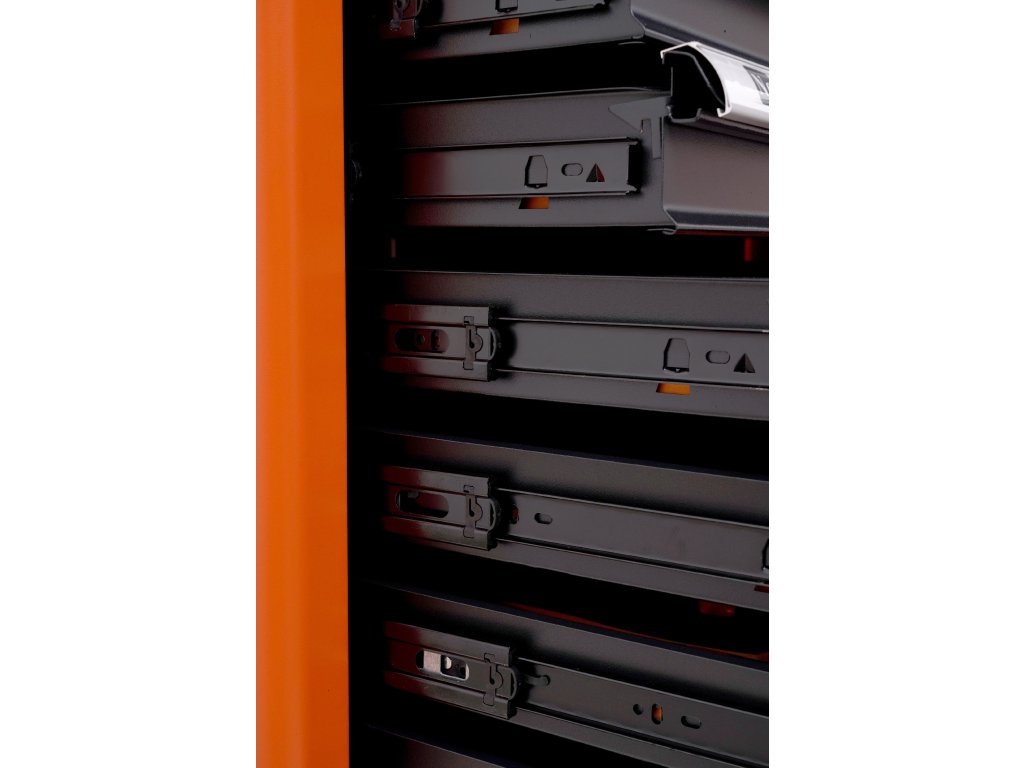 Skříňka disponuje ochranou proti krádeži v podobě centrálního zámku, který pomocí dvou klíčů uzamkne všechny zásuvky. Zásuvky jsou dále vybaveny blokádami. Přestože je skříňka těžká, snadno ji přemístíte kamkoliv díky 4 otočným kolečkům s brzdou a zámkem.