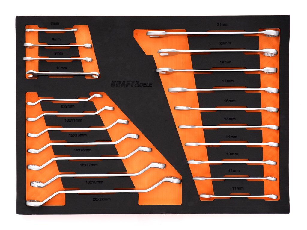 - Sada 14 ks plochých a očkových klíčů v rozměrech: 6/8/9/10/11/12/13/14/15/16/17/19/20/21 mm