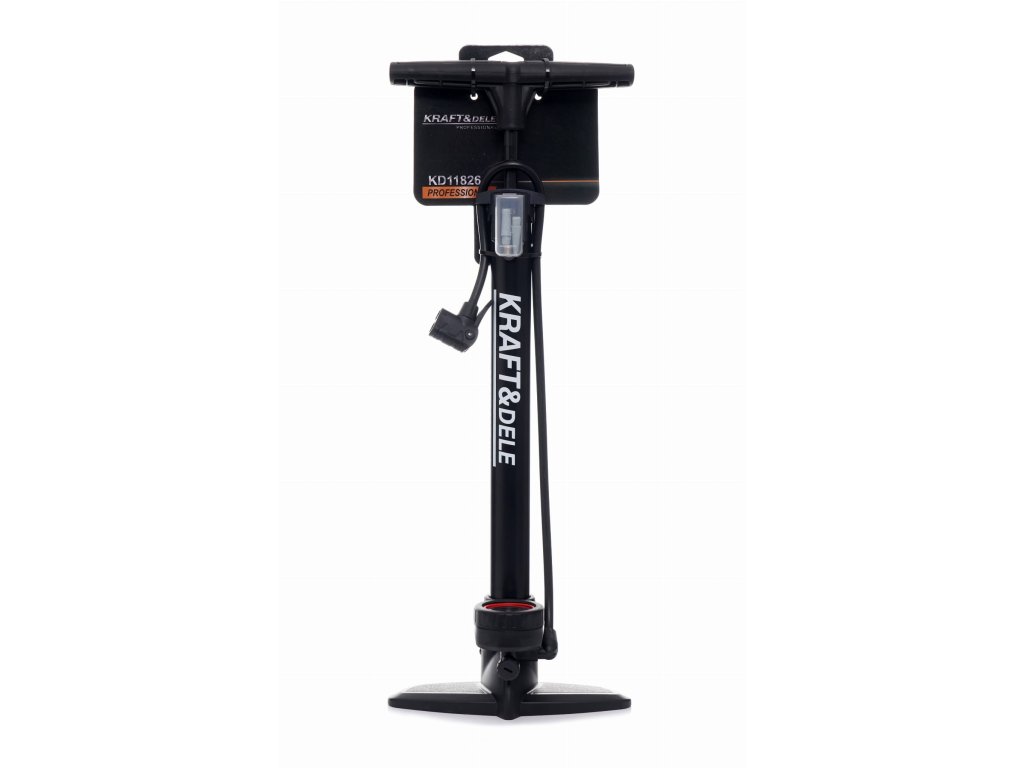 Ruční sloupková pumpa na kolo s manometrem značky Kraft&Dele, model KD11826, určená pro rychlé nafouknutí nebo dofouknutí kol na kole. Dvojitá hlavice je kompatibilní se všemi typy ventilů AV (Schrader), DV (Dunlop), FV (Presta). Sloupková pumpa poskytuje stabilitu a pohodlí při pumpování.