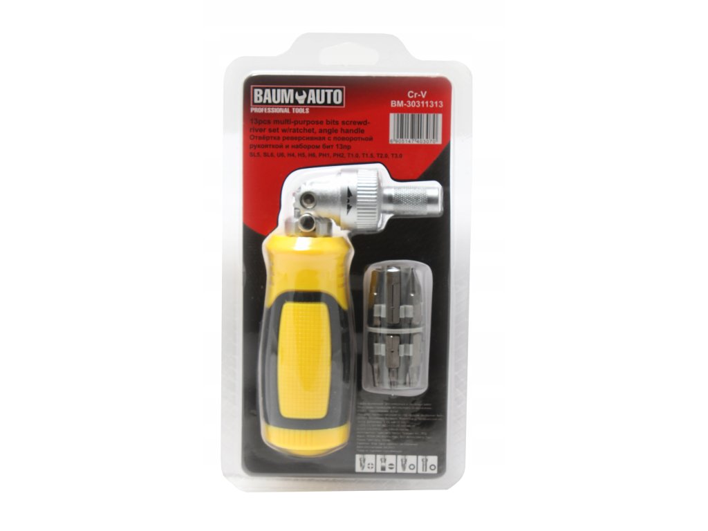 Šroubovák s ráčnou + 12 bitů, 13dílná sada