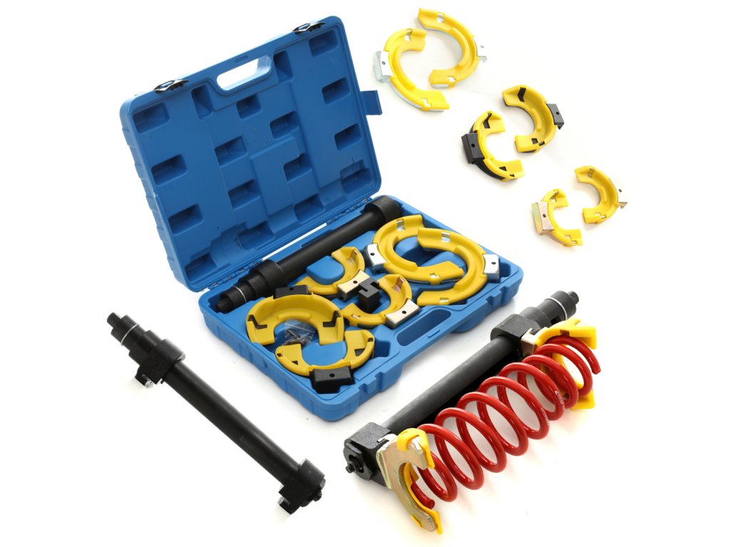 Profesionální sada pro stahování pružin je navržena pro použití v osobních a dodávkových automobilech. Tato univerzální sada je kompatibilní s vozidly značek BMW, TOYOTA, MITSUBISHI, VW, AUDI, SAAB, NISSAN, HONDA, SUBARU, VOLVO, OPEL a PORSCHE. Všechny části sady TAGRED jsou vyrobeny z vysoce odolné tvrdé oceli, která snadno odolává vysokým stlačovacím silám. Díky speciální konstrukci stahovače se vysoká stlačovací síla rozkládá na velkou plochu, což minimalizuje riziko poškození pružin a prasknutí stahováku. Svorky TAGRED jsou vybaveny dodatečnými nástavci, které stabilizují pružinu během stlačování a chrání ji před poškrábáním.