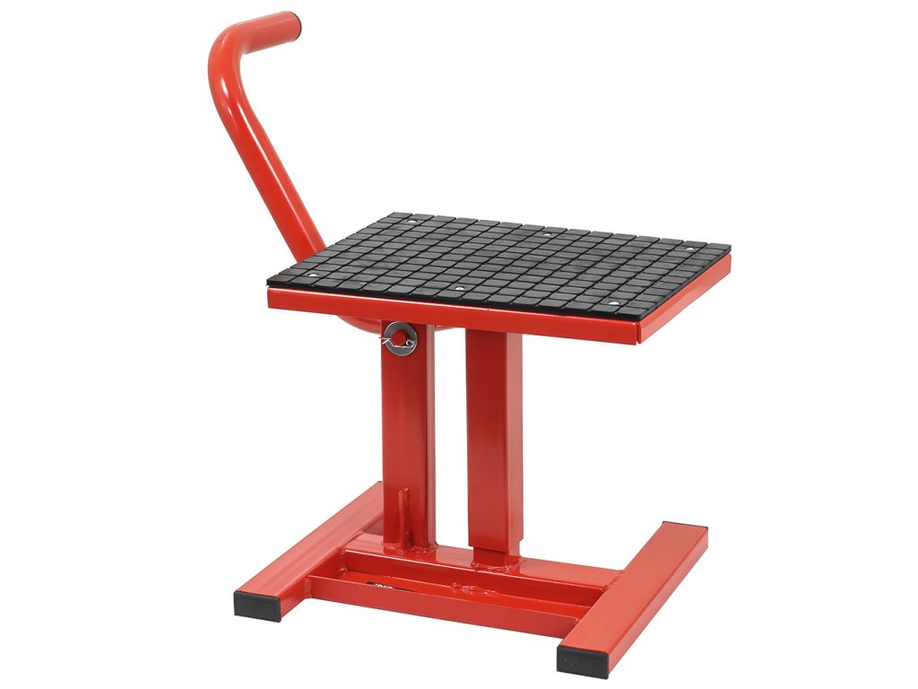 Univerzální zvedák určený pro motocykly typu cross, enduro a trial. Jednoduchý na obsluhu, lehký a přenosný, umožní snadné opravy jak u předního, tak zadního kola současně, a to bezpečným a efektivním způsobem. Značně usnadní i mytí motocyklu. Vysoce kvalitní ocel použitá k výrobě konstrukce zajišťuje jeho trvanlivost a stabilní, bezpečné zvedání motocyklu. Gumové prvky chrání rám vozidla.