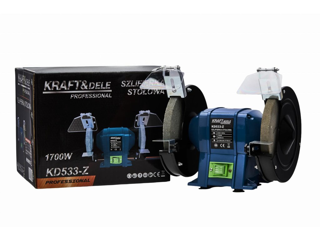 Obsah balení: • Stolní bruska BESTCRAFT KD533-Z • 2× brusný kotouč • 2× kryt • 2× podpora • Ochranné kryty • Návod k použití • Originální balení |