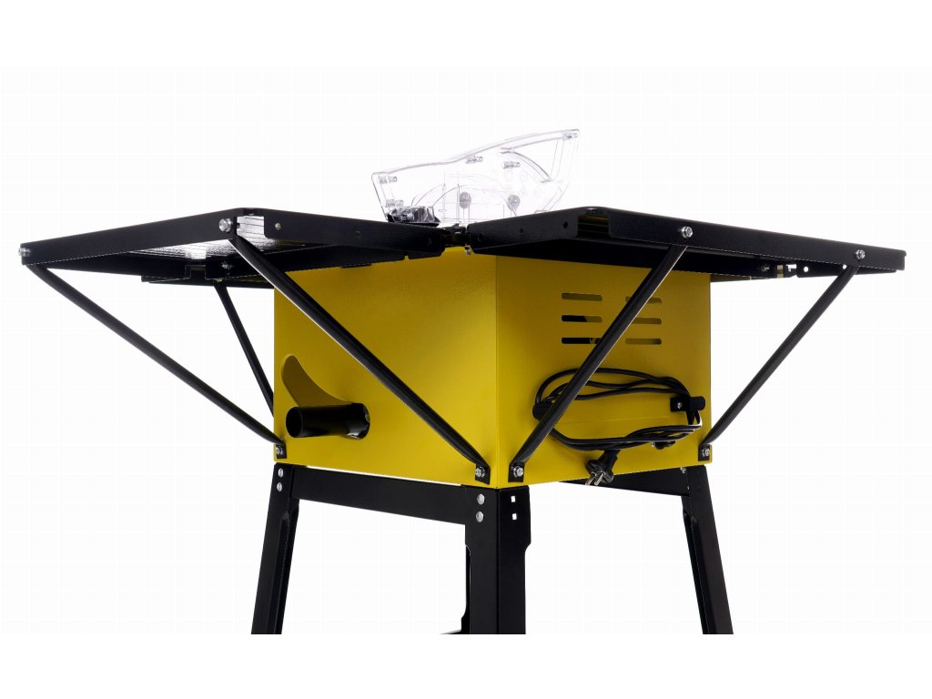 Díky malým rozměrům a skládacím bočním stolkům je pila snadno přenosná a skladovatelná, což ji činí ideální pro práci mimo dílnu.